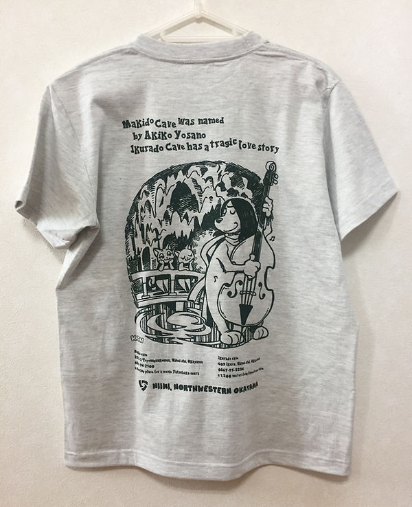 また、私たちヤヒロラボの所在地・岡山県新見市(にいみし)も、現在、地方創生に取り組んでいます。第一に私たちは、新見市の誇りを次の世代に繋げていきたいと考えています。例えば、井倉洞や満奇洞といった鍾乳洞は、新見市の人気の観光スポットです。また、千屋牛(ちやぎゅう)やピオーネ、キャビアは新見のA級グルメとして認知されるようになってきました。毎年秋に行われる、立ち見厳禁の土下座まつりも皆さんに実際に見ていただきたい奇祭です。これらの「新見の誇り」をTシャツのバックプリントにデザインしました。